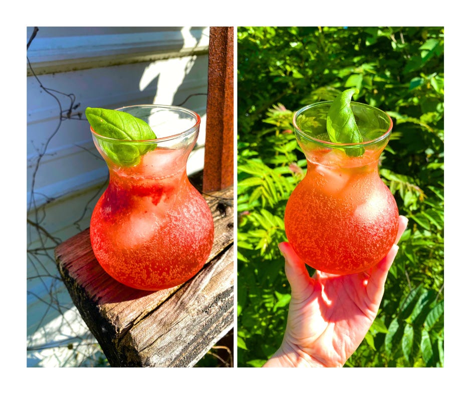 Add ice cubes to a 12-oz. tumbler and pour in a 1:1 ratio of the Strawberry Basil Shrub and your choice of mixer (sparkling water, 1 shot of vodka, or 1 shot of tequila). If you’re adding alcohol, make sure to add club soda or a sparkling beverage to add some bubbles! This shrub also tastes excellent with a splash of ginger beer.