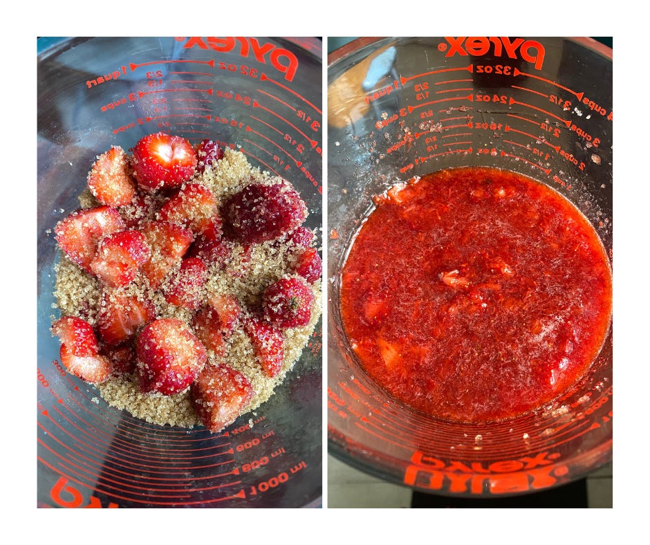 Cover the bowl and refrigerate for 1-3 days, allowing the strawberries to macerate (soften in the sugar) until all the sugar has dissolved.